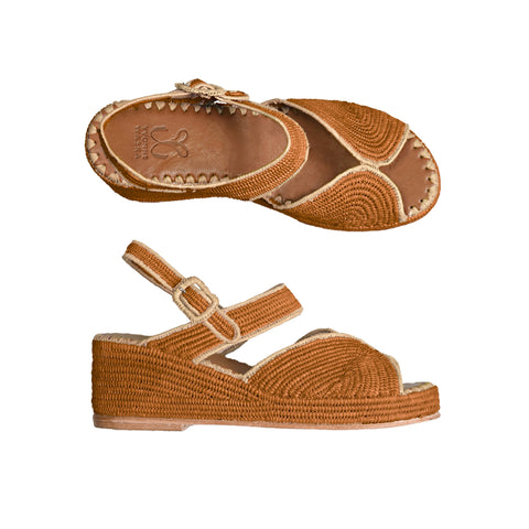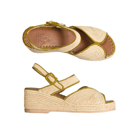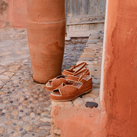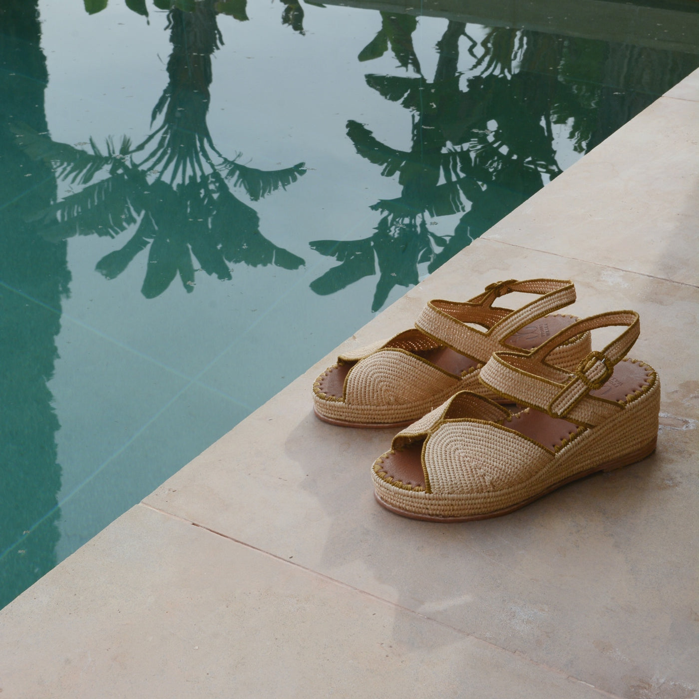 Plateforme de 6 cm recouverte de raphia et talon protegé par un patin
