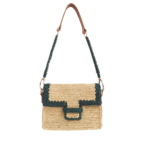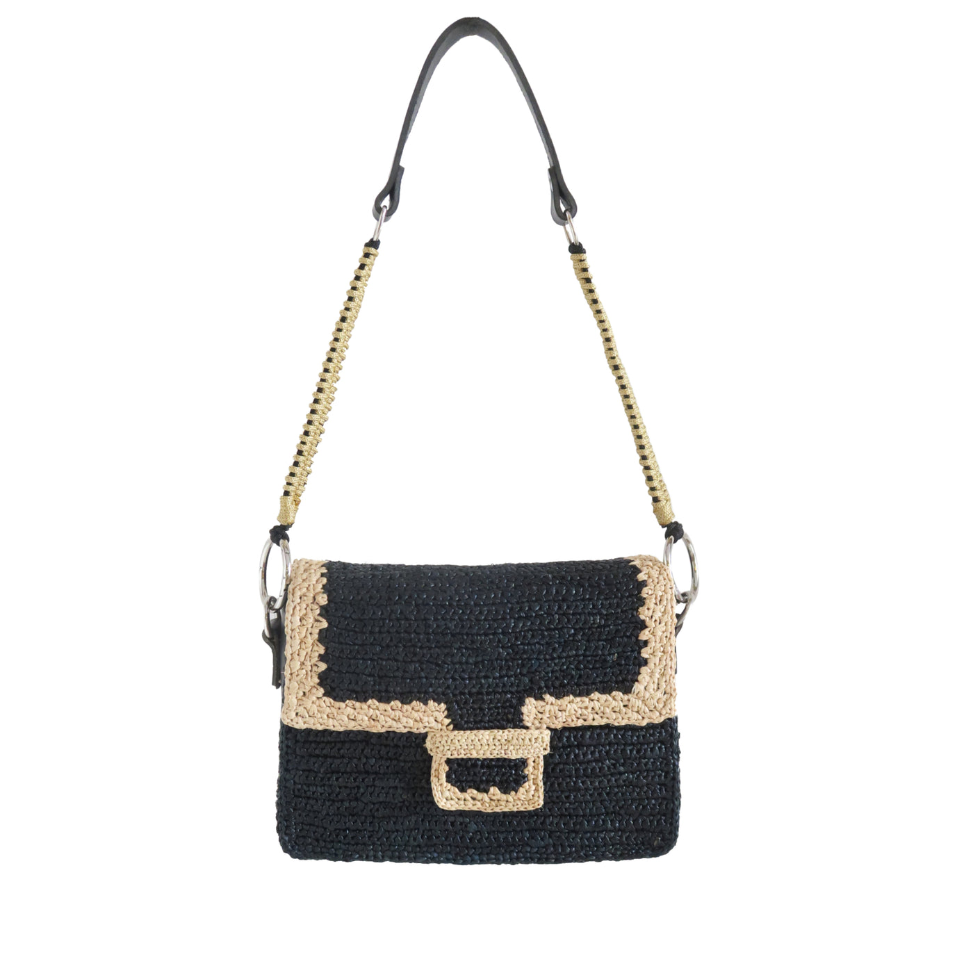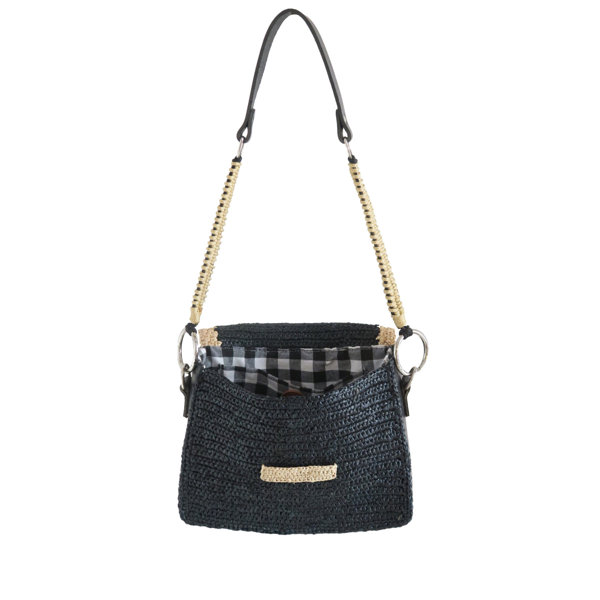 - Leather and macrame handle, removable with two nickel-plated steel snap hooks 70 cm