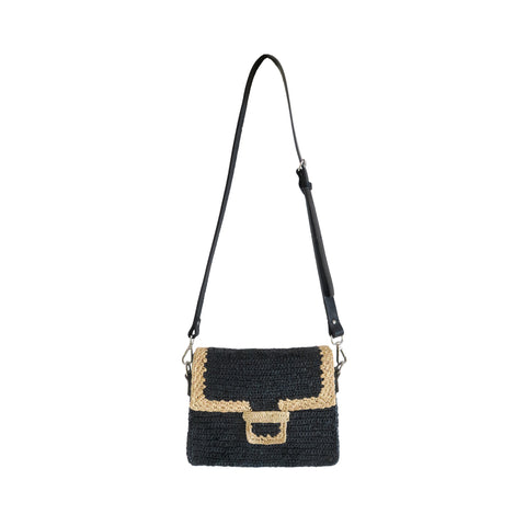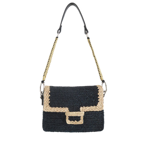 - Leather cross-body strap, adjustable with a nickel-plated steel buckle and removable with two nickel-plated steel snap hooks between 87 and 100 cm