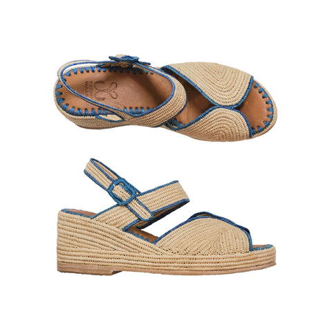 6 cm platform covered with raffia and flat heel covered with a protective pad
