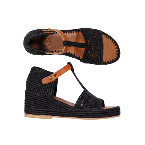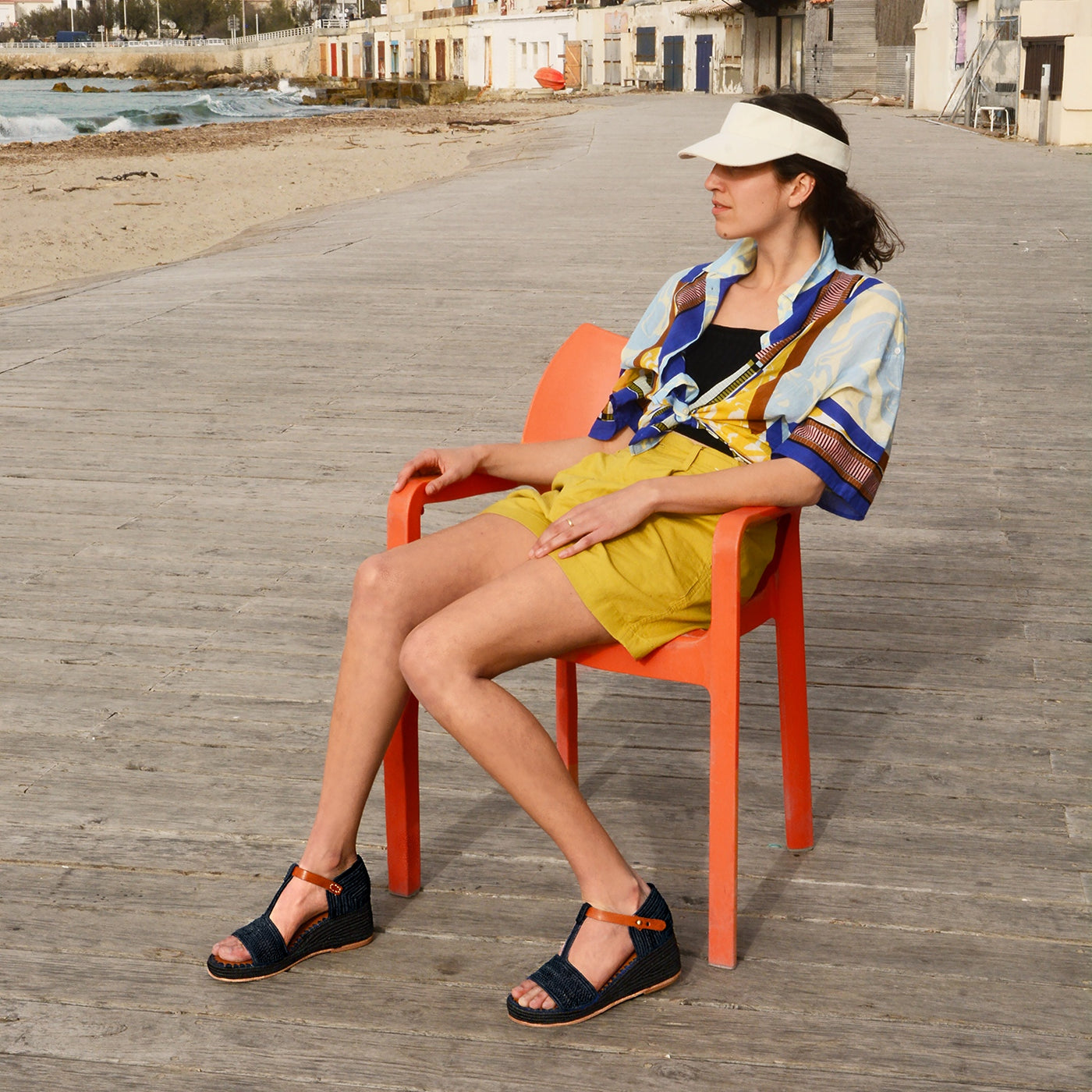 Plateforme de 6 cm recouverte de raphia et talon protegé par un patin