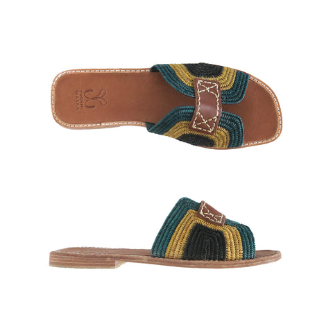 Mules multico, tissées main en raphia végétal