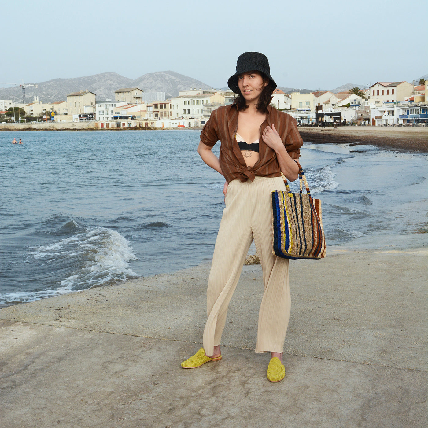 Slippers, tissées main en raphia naturel